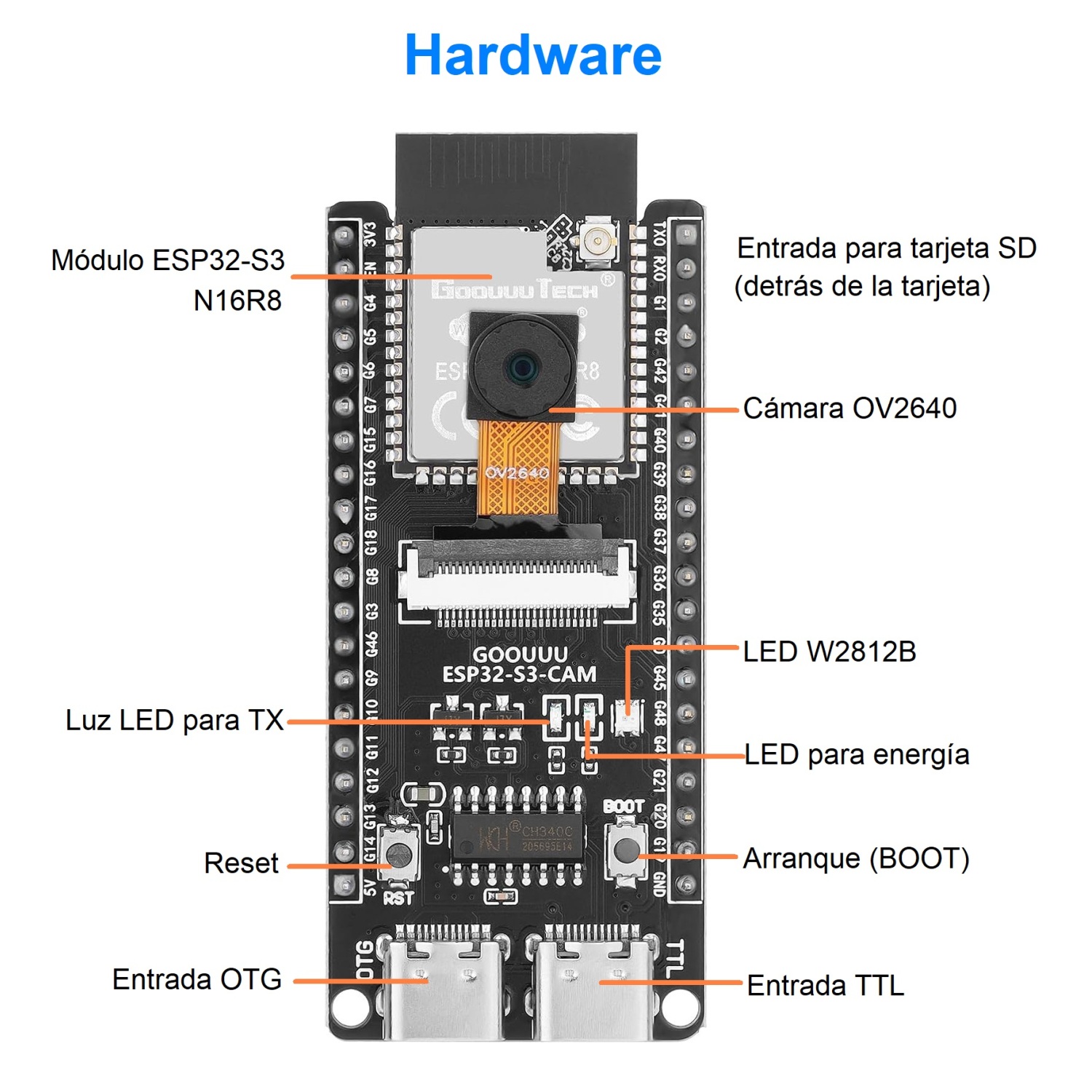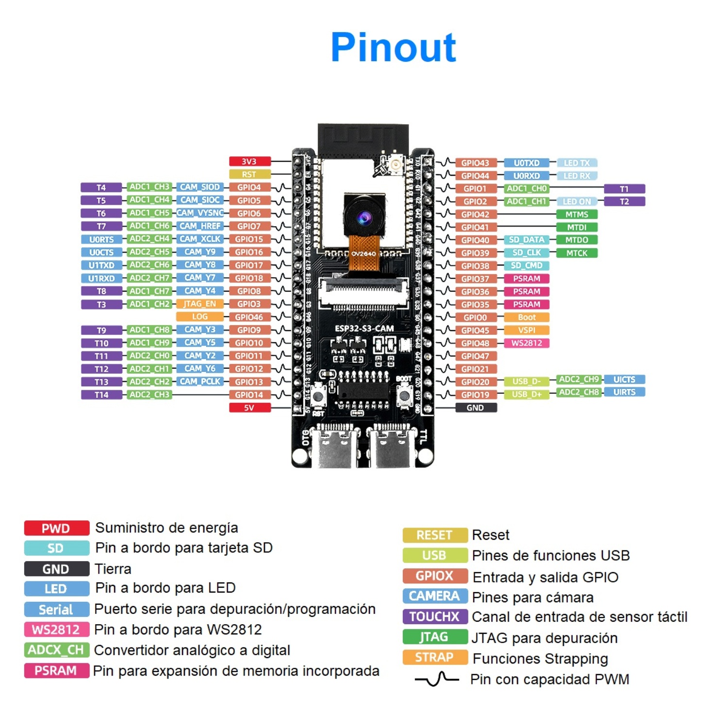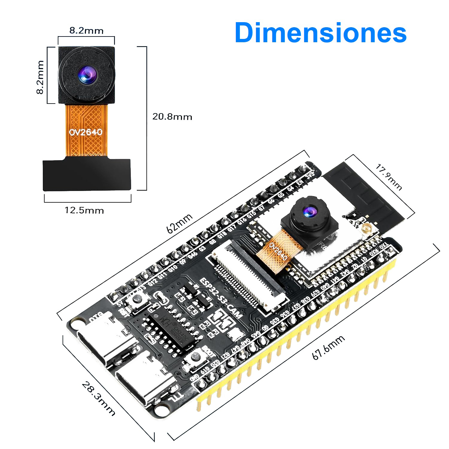Tarjeta de Desarrollo ESP32-S3 (N16R8) (Con Cámara OV2640)