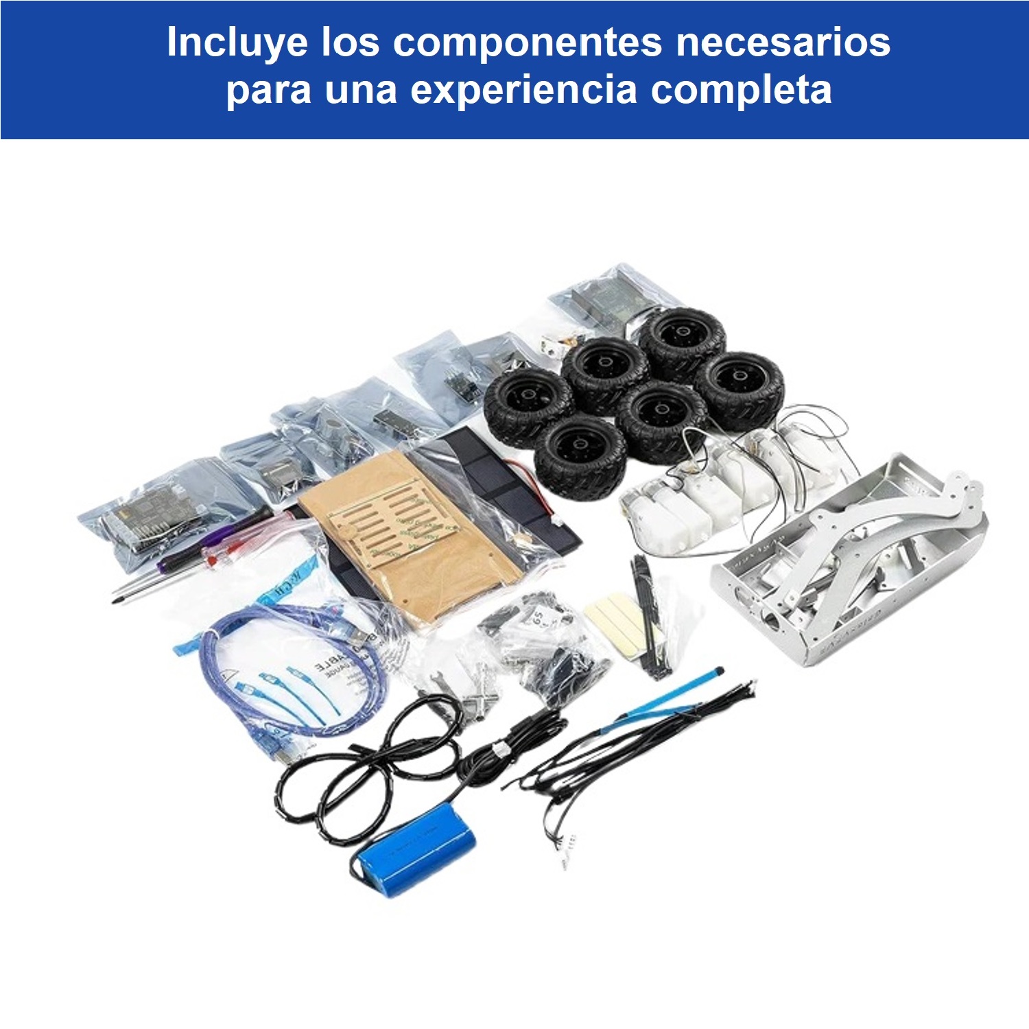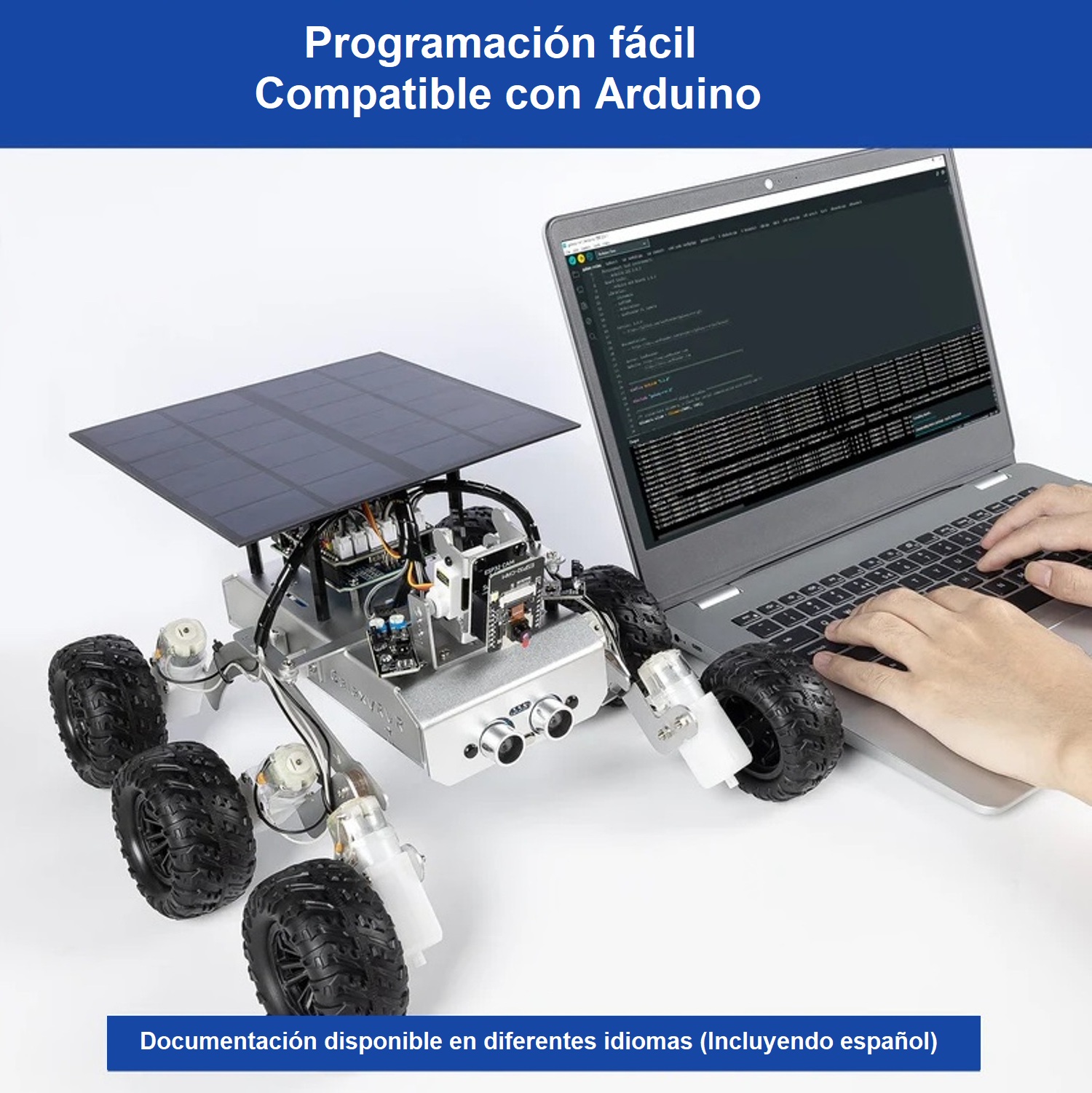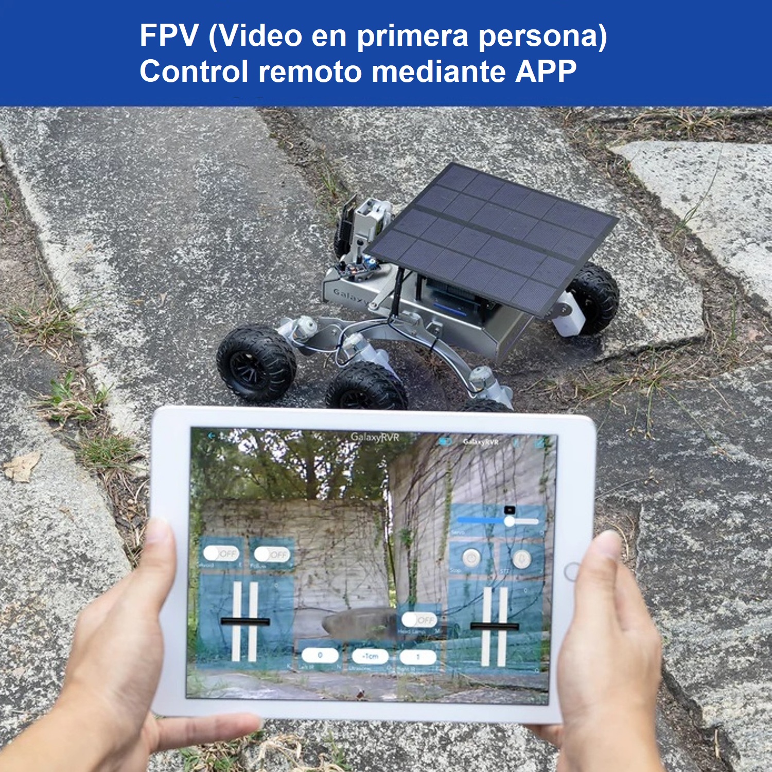 Descubre la emoción de explorar Marte con la plataforma GalaxyRVR. Construido con un resistente marco de aleación de aluminio y un sistema único de balancín-bogie, este rover se adapta fácilmente a diversos terrenos. Alimentado por energía solar y equipado con una cámara ESP32 para imágenes FPV en tiempo real, GalaxyRVR combina sostenibilidad con exploración inmersiva. Sus sensores inteligentes garantizan una navegación fluida alrededor de obstáculos. Tanto si eres un amante de la tecnología como un explorador curioso, GalaxyRVR te ofrece una aventura marciana aquí mismo en la Tierra. Sumérgete y viaja más allá de lo común.